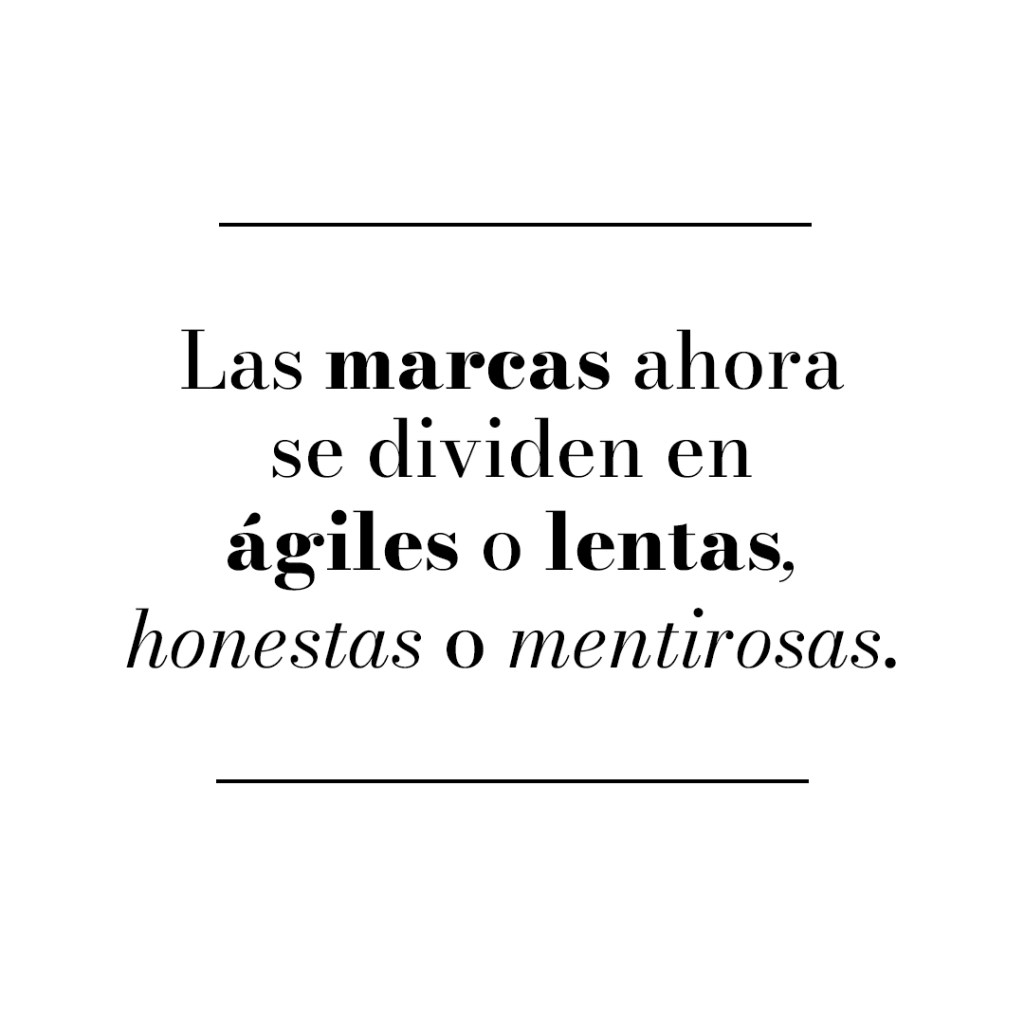 La pandemia definitivamente replanteó el enfoque de marcas y consumidores. Para las marcas, es priorizar lo que realmente importa para de esta manera establecer una conexión con sus clientes. Darse cuenta del impacto de sus acciones para convertirse en verdaderos agentes de cambio. Buscar alternativas desde el interior para salvaguardar la salud e integridad de sus empleados y consumidores, así como contribuir a preservar el medio ambiente. Las marcas de hoy, buscan inspirar, alzar la voz y sembrar relaciones profundas poniendo más atención en el love que en el like. Las marcas buscan realmente conectar, hablar en el mismo idioma, ser empáticos y construir a través de emociones relaciones sólidas y perdurables. Así como ser transparentes en su manera de operar y comunicarse.